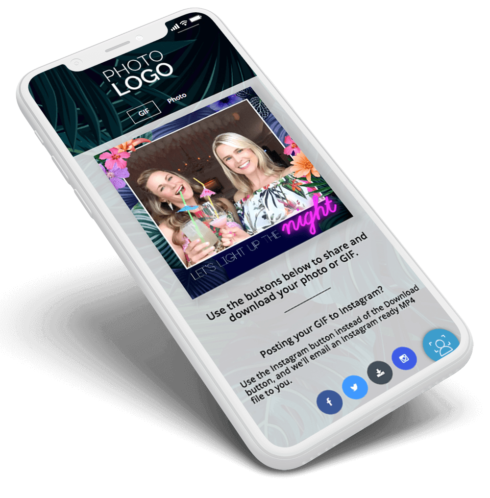 Twitter loves GIFs. Facebook recently became GIF friendly with the ability to post GIFs via links from other websites, and Instagram hasn’t been playing nice at all. That’s okay. We are equipped with the tools necessary to help your guests post their GIFs on all three of these social media outlets. So, let the Likes, Shares and Retweets commence!